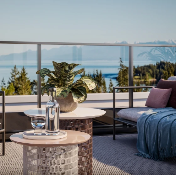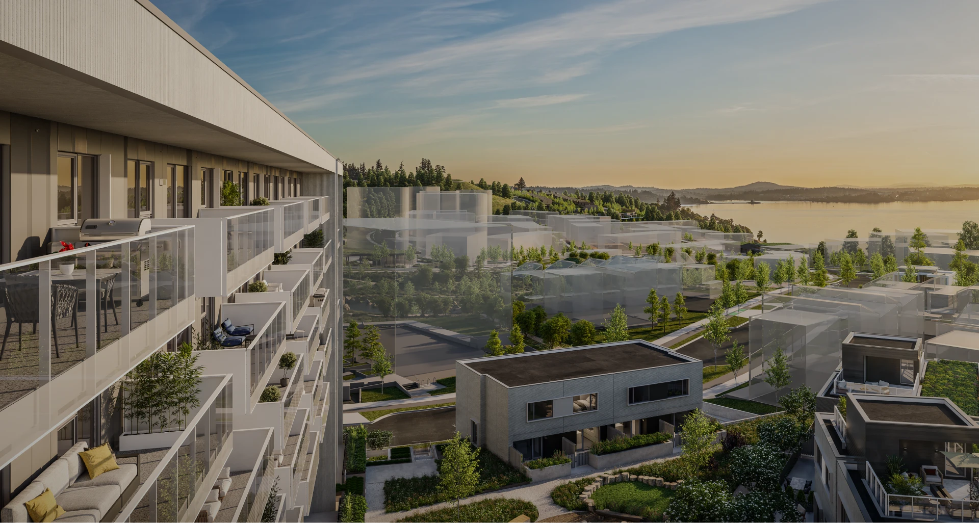 20,000 SQUARE FEET OF PRIVATE AMENITY SPACE expands every home at Origin to include a fully equipped fitness centre, a shared entertainment lounge complete with kitchen and dining, a cedar-lined sauna, as well as access to co-working and meeting spaces for a seamless work-from-home experience.