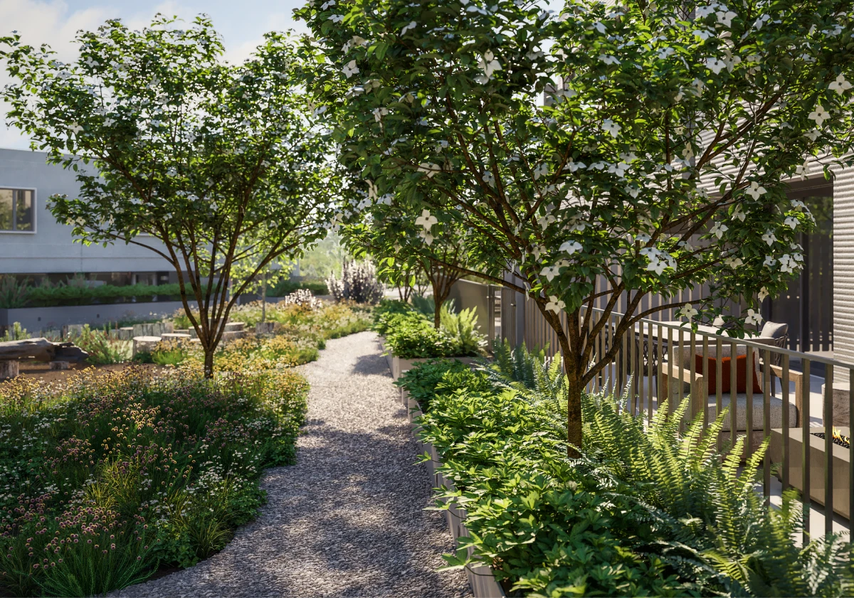 DESIGNED FOR FUN AND EXPLORATION, natural gathering spaces create the perfect play spaces for little ones, while seating areas allow parents to relax and enjoy the beautiful surroundings. From the courtyard drive aisle to walking paths, a kids’ play area, a rooftop BBQ lounge, and steps to the beach—your backyard has never looked better.